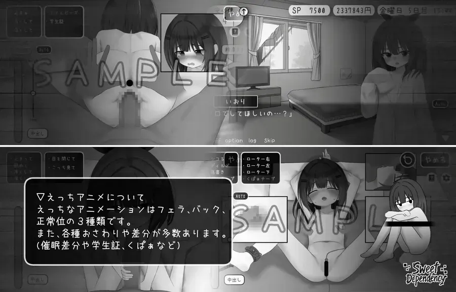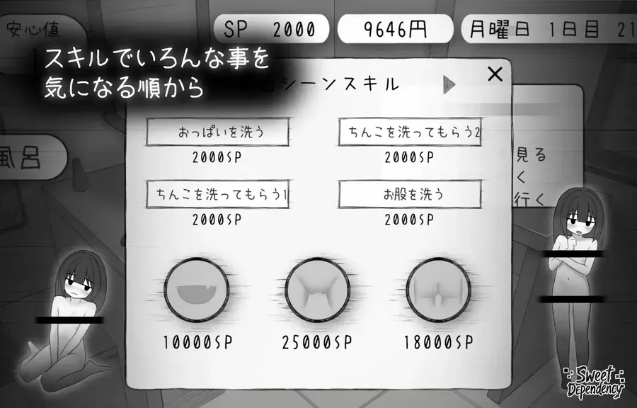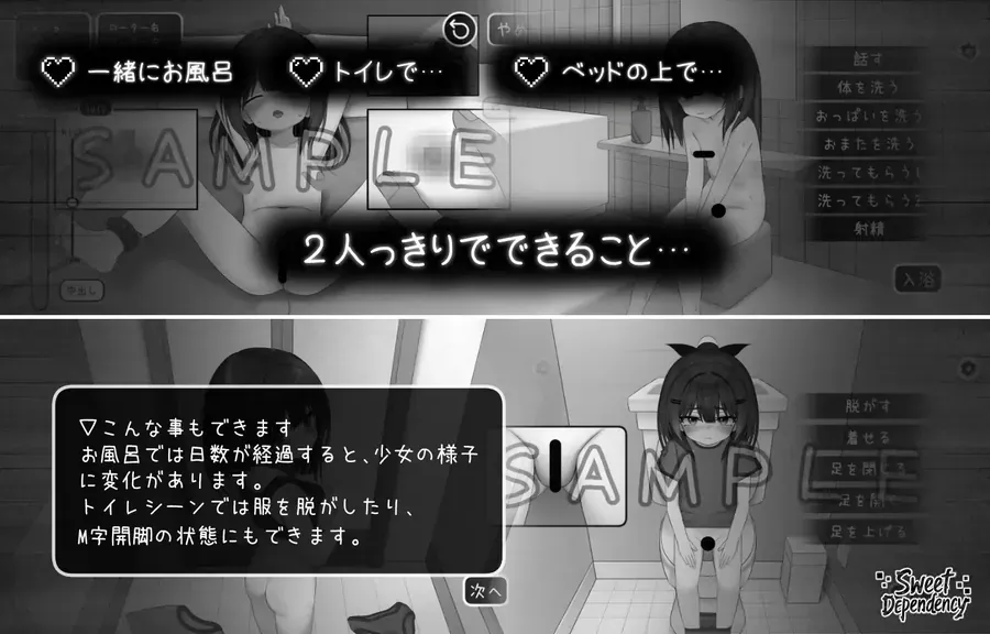 游戏介绍·回到家时,一位陌生的少女突然出现并提出「让我住下来吧」的请求。她究竟来自何方?这是一款与神秘少女共同生活的亲密模拟游戏!作品特点● 立绘包含丰富的表情与服装差分无论是日常场景还是亲密场景,都能充分体验少女的生动反应。● 剧本游戏包含超过1万8千字的剧本、15张以上的CG及大量差分。● 动画包含3组由6张画面构成的动画,以及大量动画差分。触摸互动中也包含丰富的动画效果。● 触摸互动在浴室及亲密场景中均可进行触摸互动。● 浴室随着相处天数的增加,与少女之间的距离也会逐渐产生变化……?● 厕所若赠送恐怖电影给少女,她会请求你陪同她去厕所。此外,还可以为她脱衣、敞开私处、或是让她做出M字开腿姿势……● 教程功能可随时呼出相应的教程提示,也可通过设置关闭此功能。● 断面图显示断面图也包含动画及内she差分。对此不适的玩家可随时通过设置关闭该功能。● 时间有限的玩家也能安心游玩!我们在Ci-en网站上准备了作弊指令。可解锁全部CG、全部技能、全部物品,也可直接跳转至任意剧本。游戏简介这是一款充满亲密互动的模拟游戏。从触摸互动到亲密行为,再到共浴与厕所陪伴,您可尽情享受与少女独处的同居生活。亲密场景中可进行触摸互动。通过解锁技能,逐步拓展互动方式与顺序。无论是日常部分还是亲密部分,都能通过丰富的剧本深入体验与少女共度的每一天。亲密场景不仅包含动画,还配有音效与语音,敬请享受。精心设计的场景脱衣场景与入浴场景会随着天数增加而解锁更多差分与追加CG。即使在浴室中,也可通过解锁技能开启更多互动。厕所场景也可通过解锁技能实现更多互动。包含换装功能,换装效果会体现于立绘中,等待时的少女也会反映服装变化。