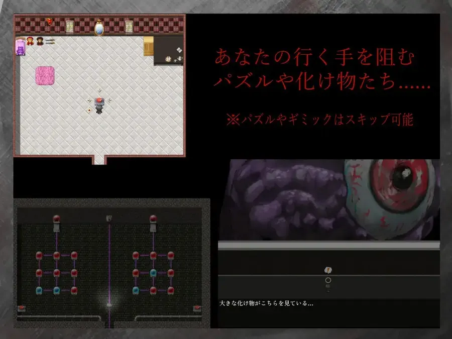 背景设定:一座腐朽的洋馆为舞台的短篇探索恐怖游戏。你失去了记忆。醒来时,身旁站着一位陌生的少女……在她的协助下展开探索,你能否从怪物横行的洋馆中逃出生天……?女主角兼导航员:醒来时出现在你身边的少女格蕾丝(Grace)协助你探索的向导。然而,她似乎并非人类……?阻碍探索的怪物与机关:洋馆中充斥着怪物,阻挠你的行动。避开它们,成功完成探索吧。此外,馆内还藏有数道奇异的机关。解开它们,推进你的脚步。※所有解谜要素均可跳过,请根据需要灵活使用。探索间隙的互动:随着探索进展,你将获得她的“奖励”。若她是唯一的依靠,沉溺其中也未尝不可……?体位场景:正常位、骑乘位、对坐位、kou交