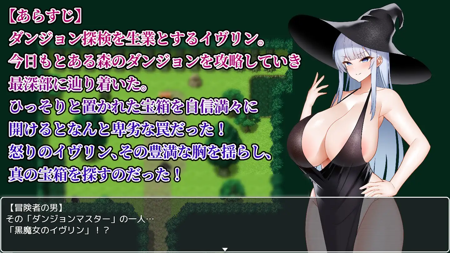 【伊芙琳】通称“黑魔女伊芙琳”拥有“地城大师”称号的顶尖强者——此称号仅授予突破过百座地下城的征服者。她精通魔法,兼具冷静的分析力与高傲的个性。平日里保持着优雅姿态,却也暗藏些许粗暴的一面。【剧情梗概】以探索地城为业的伊芙琳。今日也如常攻破了某座森林迷宫,抵达最深处。当她自信满满地开启静谧角落的宝箱时,竟中了卑劣的陷阱!暴怒的伊芙琳晃动着丰盈胸脯,誓要找出真正的宝箱!规格参数・预计游戏时长 30分钟~1小时・基础CG 13种(均为游戏结束事件)・基础立绘 2种・分辨率:1440×810・支持消息跳过、临时清除功能・包含回忆房间&回忆房间全解锁开关