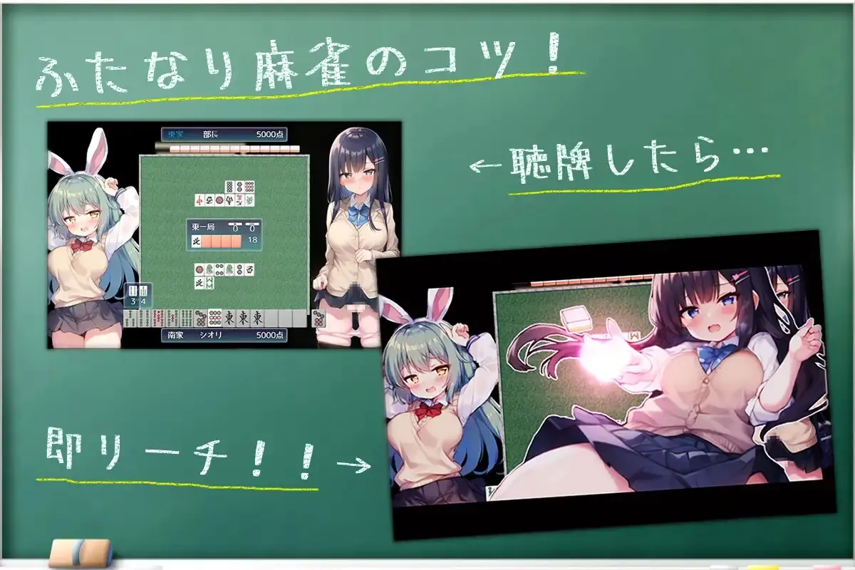 游戏介绍:加入[扶她麻将部],拯救濒临解散的社团!化身诗织,在别样的双人麻将比赛中,与百合少女们展开激烈的竞技与爱恋。体验AI汉化的日系2D RPG,享受制服、萝莉等元素的甜蜜冲击。在教学楼深处,挑战极限双人麻将,让你的立直棒…火力全开!准备好迎接这场不同寻常的社团活动了吗?游戏内容:“我也试试参加社团活动吧……?”在教学楼深处,两个关系很好的回家部成员偶然来到了“双身麻将部”!为了拯救濒临废部危机的双身麻将部,诗织的小小挑战开始了!在传统竞技“双人麻将”中……把阴茎当作立直棒!围绕麻将桌堂而皇之地进行的激烈双人女同性恋性行为!打麻将吧! 令和最新版·极限双人麻将动画RPG!