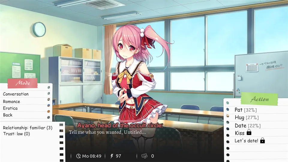 学校游戏是一款具有 RPG 元素的游戏。你要创建自己的角色,并在学校环境中发展。学习技能,购买装备,结识同学,建立自己的声誉和预算,成为学生会和各种俱乐部的成员,改善与学生会主席的关系,你还可以决定更换学生会主席。这不正是每个人在高中,甚至在学生时代都想要的:完全自由的行动吗?