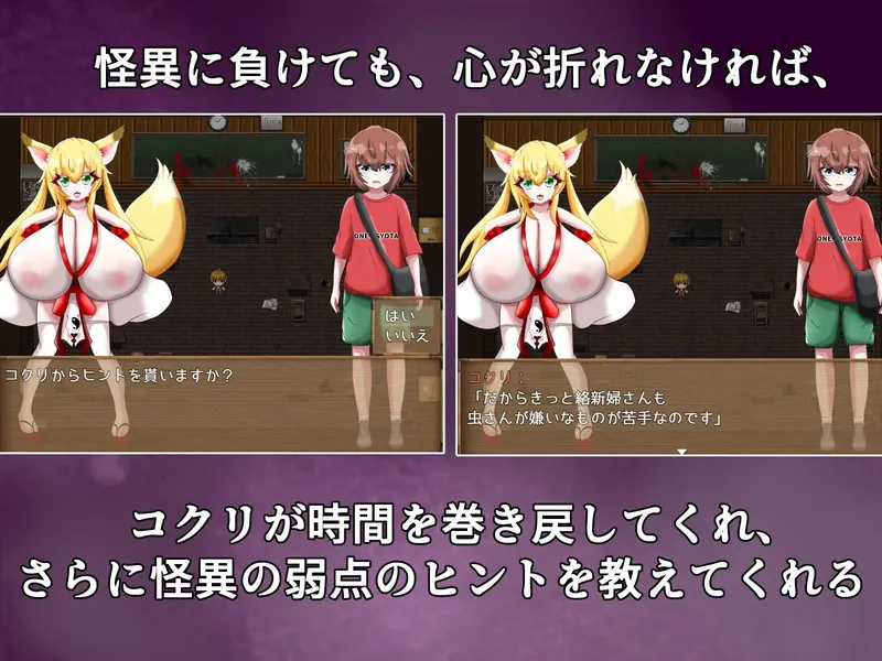 [故事]暑假来到乡下祖父家玩耍的少年“翔太”,那天也在山中嬉戏游玩。不料突然遭遇倾盆大雨,浑身都被淋透了。他四处寻找能够避雨的地方,在山里徘徊时,发现了一栋古老的建筑。看到这栋建筑的主人公,想起了祖父曾对他说过的话。“绝对不可以进村子边上的那所废弃学校哦。”“那里一到晚上就会……”(咦?后面说的是什么来着?)糟糕的是,翔太竟然忘记了祖父嘱咐中最关键的部分。眼前的建筑大概就是被告诫不能进入的废弃学校,但附近又没有其他地方可以避雨,翔太感到十分为难。就在翔太不知所措之际,他在废弃校舍里看到了一个女孩的身影。那是个和他年纪相仿的可爱少女。翔太大概是因为不安吧,向她打了声招呼。“难道说,你也是来避雨的吗?”然而少女并没有注意到他的声音,消失在了废弃校舍的深处。虽然祖父告诫过他绝对不能进去,但既然有同龄的少女在里面……他大概是这样想的吧。“喂,等等!让我也一起避避雨嘛!”他一边说着,一边追着少女跑进了废弃校舍。他却不知……这将会把他引向一个充满甜美蛊惑、弥漫着淫靡气息的夜晚……