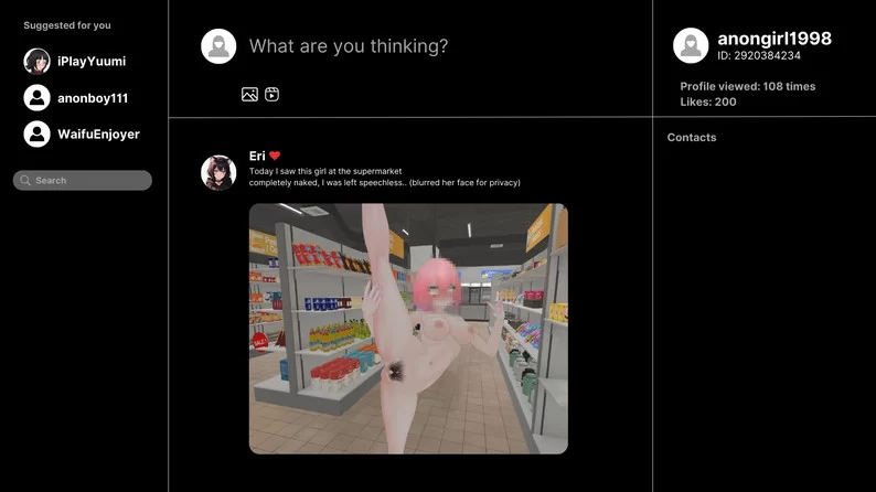 游戏简介Roxanne,这是一部3d题材的露出slg作品游戏采用UNITY引擎制作,现在处于开发阶段,已经V0.40版本游戏有着非常强大的自由度,可以在城市里各个地方开心羞耻的lu出!不进如此,还有不同的女主可以控制,各种有趣的PLAY应有尽有全程3D,可以360度欣赏各种场景