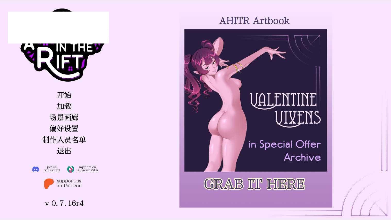你被扔进了一个次元裂缝,不知道该怎么办。然而,来自不同现实的其他被抛弃者一个接一个地加入你,以形成信任、友谊和身体亲密的永恒纽带。来自各种幻想维度的美丽女孩白天照顾你,然后你整夜去探索裂缝。你可以和魅魔一起烤蛋糕,和巨大的性感海盗船长摔跤,和年轻女孩的助手一起学习魔法,然后和他们一起做一些课外活动。爱上女孩,和她们上床,每晚都陷入不同的裂缝!更新日志0.7.16r4 版观看 Cait 试图改变她的生活………并尝试 Goth Cait 外观。这不是一个阶段,Azraesha 小姐!梦见 Rowen 偷偷出现在你面前,做出不雅的手势看看 Rae 的标志性打屁股和其他与其他女孩的小动作的实验性(重新)实现