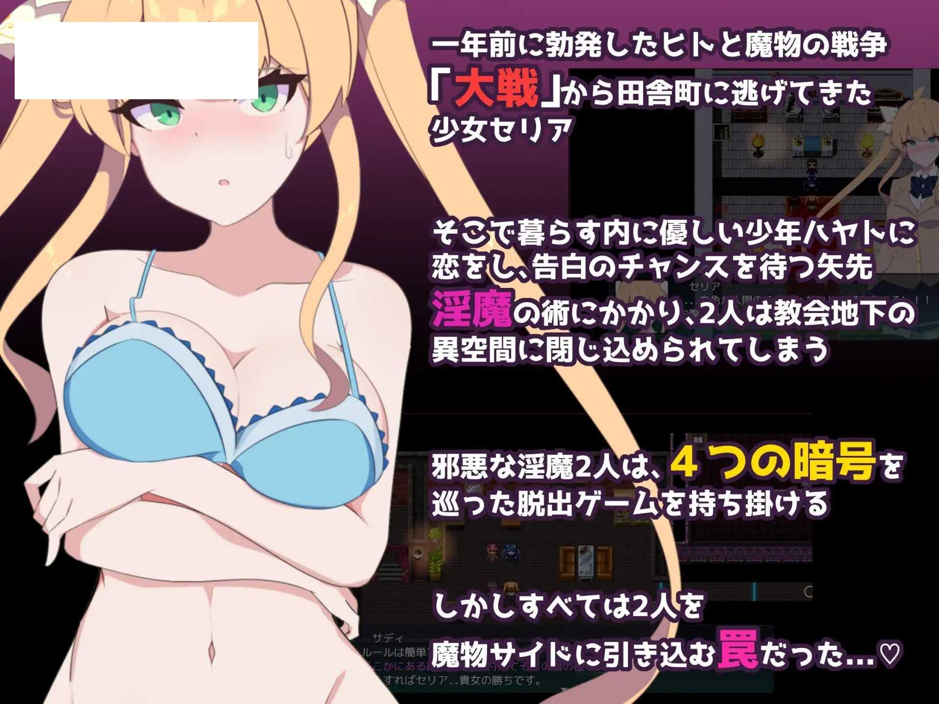 人类军队与魔王军率领的魔物,爆发了一场大战。因战火波及故乡的普通女性——瑟莉雅,只好躲到叫做巴林特的小镇去避难。瑟莉雅爱上了一名在巴林特小镇认识的青年——哈亚托。就在她要向哈亚托表白时,两人就落入了淫魔的陷阱。并告诉他们「找出藏在房间某处的暗号才出的去呦。」想当然,狡猾的淫魔所设计的逃脱游戏充满了蓄意为之的缺陷。四散在房间各处的情报与其说是关于暗号的提示,更像是赞扬淫魔干部——萨德的讯息。并且,在两人进入新的关卡时,淫魔那邪恶且阴险的诱惑就会向他们袭来……