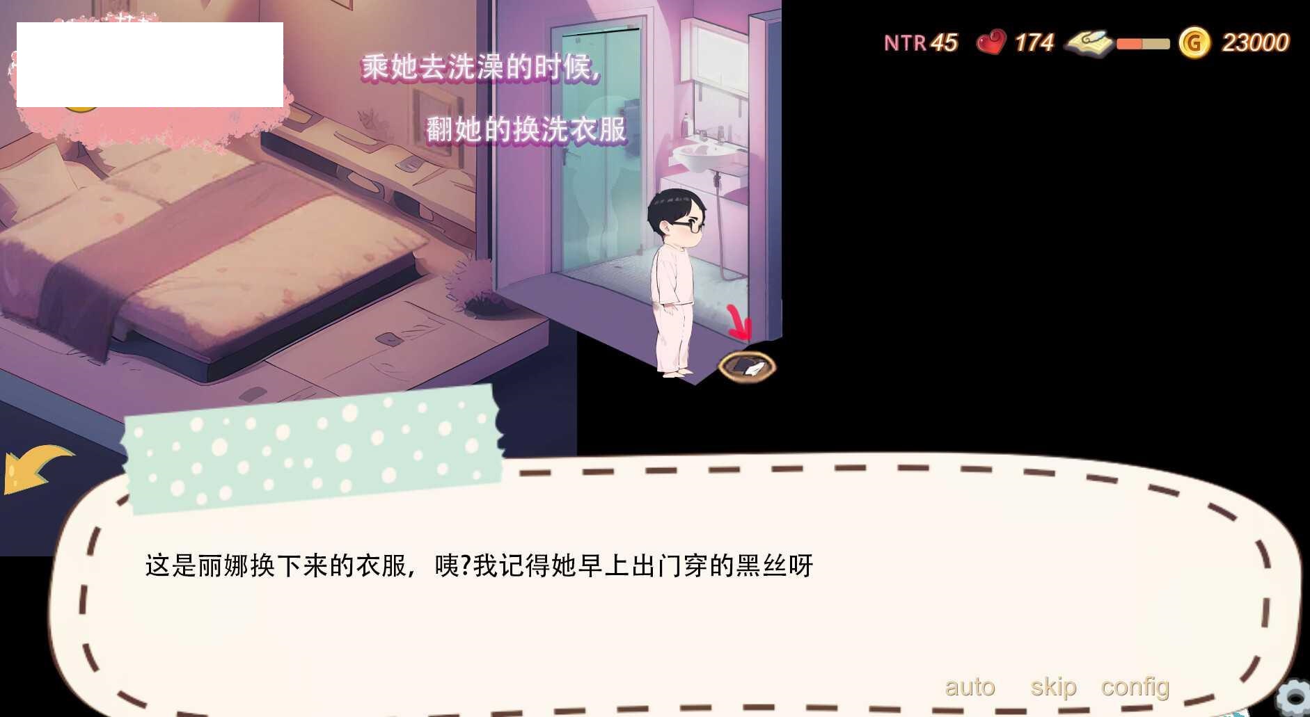 这是一款18禁的恋爱推理调查游戏。你将扮演一名25岁的公务员备考生,在机缘巧合下和心爱的女孩同居了。本以为会像恋爱电视剧一样发展,但是现实并不是想象的那样。你被戴绿帽了吗?心中的谜团越来越多,你开始不停地调查。1.功能:游戏通过键盘上的方向键控制主角移动,并通过空格键与场景中的角色和对象进行交互。2.内容:70张以上CG,30张以上动态CG3.特点:全流程中文配音。剧情丰富,多结局,沉浸式NTR体验。