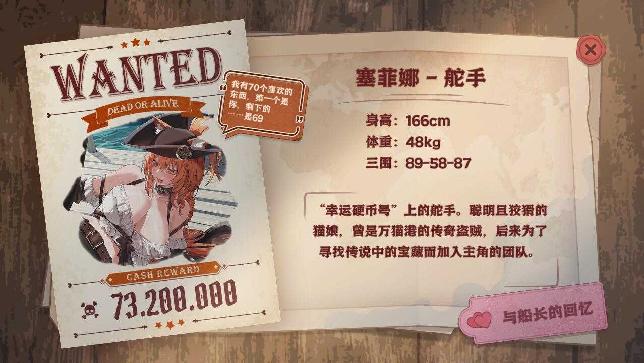 简介前方海盗来袭!船长,骷髅岛上的兽娘海员们还没有见证过你的真正实力。能否用你的「战斗技巧」将她们一一征服,并将珍贵的宝藏掠夺到船上吗?在《Miss Neko: Pirates》中,玩家将扮演“幸运硬币号”的船长,以俯视视角操作主角在一个充满海盗的海岛上进行冒险。强化你的角色,在这个对你有敌意的世界中存活下来。由于船员的叛变,“幸运硬币号”的船长被扔下了海,当船员们认为他们杀死了自己的船长时,沉入了深海时,某种神秘力量让你从死亡中幸存了下来。被夺去一切的你,能否通过强大的战斗力完成复仇,抢回属于自己的海盗船,获取岛上的宝藏,并且惩戒叛变的船员?7月更新内容我们在这段时间为船长们准备了三个新的心动角色,在船长的冒险中可以去找到她们哦~同时,为了增加船长的剧情体验,我们邀请了新的画师为游戏各个可对话角色绘制了立绘,整体替换了之前的Q版人物形象。此外我们还做了以下修改:1.修复了一些玩家读取存盘时丢失数据的问题。2.修复了角色闪避距离过小的问题。3.优化关卡帧率。