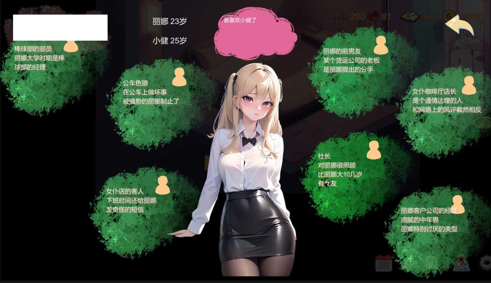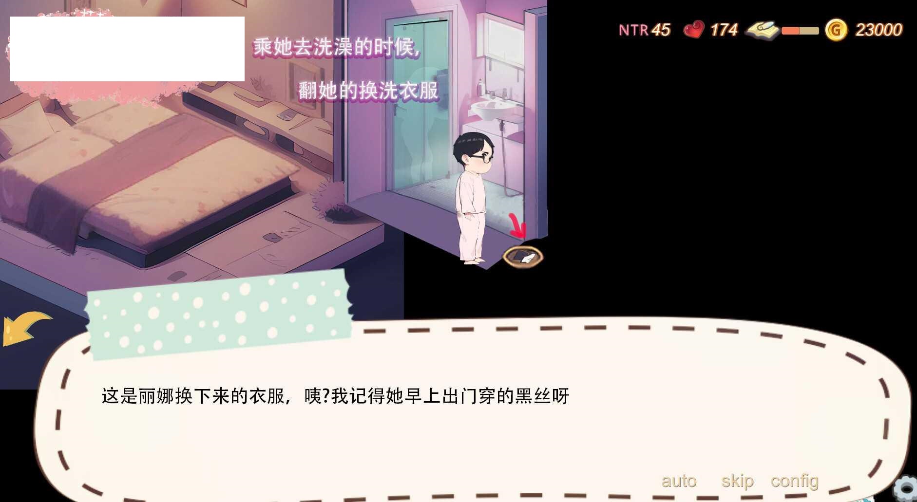这是一款18禁的恋爱推理调查游戏。你将扮演一名25岁的公务员备考生,在机缘巧合下和心爱的女孩同居了。本以为会像恋爱电视剧一样发展,但是现实并不是想象的那样。你被戴绿帽了吗?心中的谜团越来越多,你开始不停地调查。1.功能:游戏通过键盘上的方向键控制主角移动,并通过空格键与场景中的角色和对象进行交互。2.内容:70张以上CG,30张以上动态CG3.特点:全流程中文配音。剧情丰富,多结局,沉浸式NTR体验。