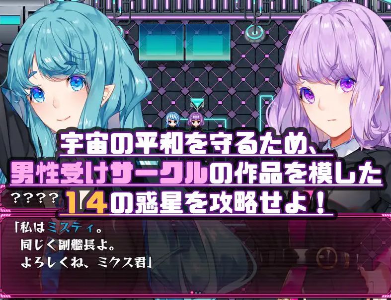 在归途中,主人公米克斯被突然出现的神秘UFO绑架。回过神来,他发现自己被绑在UFO的舰上。出现在混乱的米克斯眼前的是两位女性型外星人。舰长玛斯马上告诉了他掳走米克斯的理由,竟然是‘把地球人变成人类武器,对准威胁宇宙的大淫魔’这种荒唐的东西。对于拼命拒绝的米克斯,副舰长米斯提了一个建议。那是为了她们的目的“讨伐宇宙大淫魔”探索周边的行星,协助回收“M水晶”。只要合作,就不会改造成武器,完成后还会释放。虽然米克斯同意了这个提议,但是探索目的地的行星上充满了诱人的陷阱……壮观的宇宙之旅现在开始。