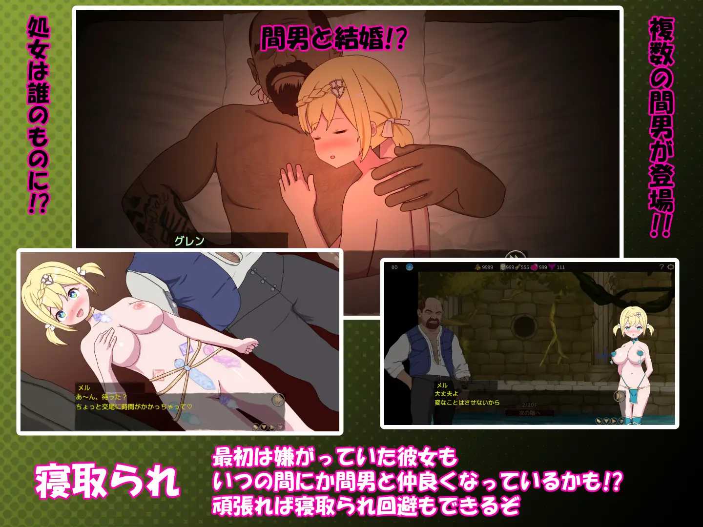 〇类型・被夺走的迷宫RPG〇故事・加入冒险者行会的主人公和女主角。可是,新人的二人属于淫魔讨伐班的事!!・受淫魔的影响渐渐变成色狼的女主角,间男的手逼近!!在战斗中触摸女主角的身体称为解咒行为,与女主角共度一夜……・果然主人公是从男人们那里得到女主角的能守护吗?〇战斗H・不是敌人而是被我方的男人触摸的新感觉战斗H〇调教・胸、曝光、出轨等各种参数・调教有界限值,可能会被喜欢的女主角培养?〇观察・可以看到间男的H的样子技能越高窥视孔就越大哦〇让他睡觉・被淫魔加上淫纹的话可以卖淫让间男们调教女主角吧!!〇更换衣服・拿到衣服和内裤的话,战斗中就不用说了通常的立绘也会有一部分变化〇音量・基本CG 40张以上・影画和动画很多・可以进行环绕游戏