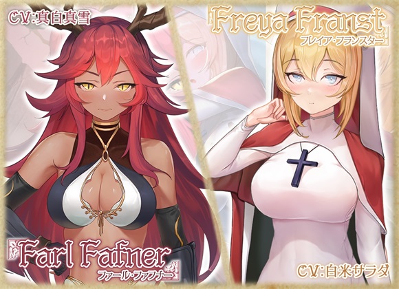 芙蕾雅・弗兰斯特卡莉亚介绍的神圣祭司。虽然她作为神的随从,保持着贞洁,但其实是会在告解室偷偷沉迷自wei的淫乱女。被主人公目击自wei现场后,一急之下请主人公教自己做爱,于是就这样破了处。随后她注意到主人公jingye里蕴含的魔力,于是借口提高自己的魔力频繁恳求主人公和她做爱。在被内she提高魔力后,为主人公施加了加护魔法,避免魔族盯上主人公。另外虽然本人并没有什么自觉,但她有着一对超级巨ru。她是喜欢被一边使劲揉胸一边狠狠抽插的骚货。法尔・法芙娜龙族和人类的混血种。性子急,为人豪爽。因为注意到主人公受到魔法加护的魔力,把主人公当做魔族,袭击了主人公。因为继承了龙之血脉,性欲很旺盛,也有S的气质。虽然会主动进攻主人公,但自己被进攻的时候也会很有感觉,发出像清纯少女一样的可爱娇喘。但她也有不服输的性格,不管在战斗中还是做爱都不轻易服输,屡次提出和主人公床上再战,然后败下阵来。她不仅追究快乐,也追求战斗力,所以这都是为了获得主人公jingye的魔力的借口。