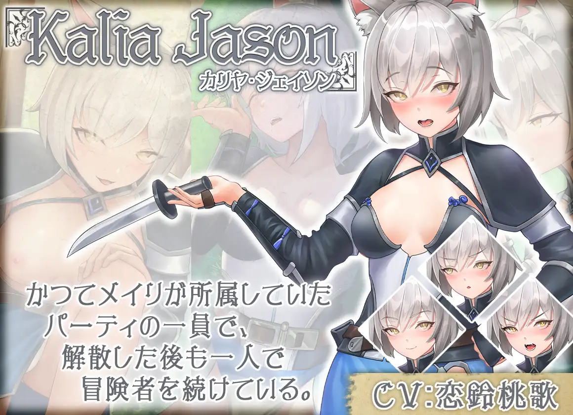 梅莉・弗洛雷斯她曾是冒险家,引退后的现在作为老板娘经营着名为「冒险家之巢」的酒馆。她有着诱人的身体但很强势,就算是死皮赖脸的醉汉缠上她,她也能将其打飞。因为主人公异常强大的魔力,她误以为主人公是魔族间谍,于是实施夜袭来确认。得知主人公不是魔族而是拥有特殊jingye的魔人之后,便向主人公索求魔力。另外,她还有爱恶作剧的一面,会在旁边有人的时候,要求主人公一边忍住声音一边做爱。不过她的内心是热情洋溢的,很照顾主人公,会给主人公安排护卫。卡莉亚・杰森猫族的亚人。曾经和梅莉是队友,队伍解散后依然一个人当着冒险家。她非常仰慕梅莉,称呼她为姐姐大人,听从梅莉的请求担任了主人公的护卫。因为从梅莉那里打听到情报,对主人公的jingye很有兴趣,她对性很开放,以至于会突然扑上来尝试榨精。虽然她自诩护卫,但也有笨拙的一面,在野营的时候会打瞌睡。另外还很在意自己的乳量,和自己尊敬的梅莉比较起来就感到绝望。■角色介绍2