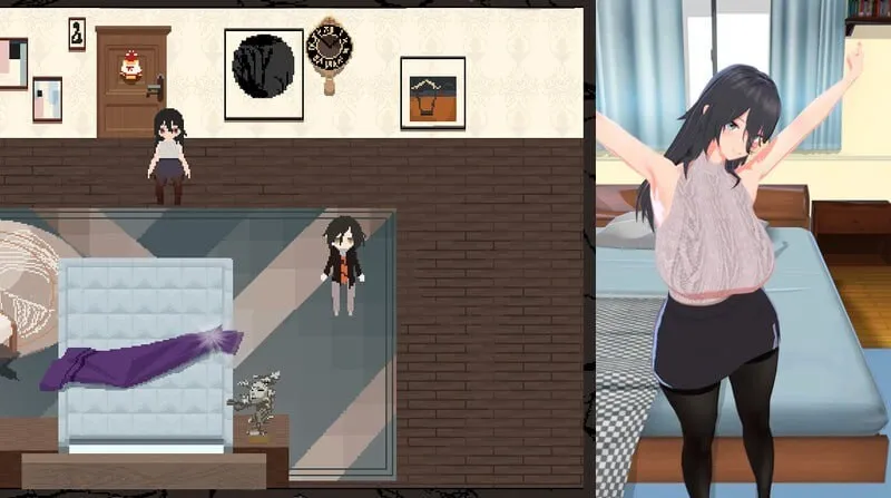 剧情梗概:你和你的老婆结爱因为工作原因搬到了新家山源小区404号,再搬家的过程中你发现似乎是上一位房主遗留下来的一座精美的雕塑。然而让你没有想到的是这个雕塑居然会是噩梦的开始,或者,那真的是梦中世界吗?游戏玩法:当你和结爱进入到梦中世界之后,探索地图,完成各种各样的挑战,了解这个梦中世界背后的秘密。游戏包含一点肉鸽要素,一lun游戏随机探险5张地图,并且根据结爱的淫乱值不同触发的CG也会不同。动态视角:随着2d人物的移动,右侧的3d视角也会动态变化。↑↓←→键:移动人物。shift键:加速移动。z键:交互。c键:打开游戏状态,可以看到人物状态,可以使用装备或物品。esc键:显示菜单。游戏语言:英文,日文,中文。游戏语音:每个场景都包含语音。游戏画面:左侧为2d像素画面,右侧为3d实时渲染动画。注意:笔记本可能需要设置让此游戏以独立显卡运行,集成显卡可能无法运行此游戏。注意:此游戏需要支持 Vulkan或Direct3D 12 或 Metal的硬件才能运行