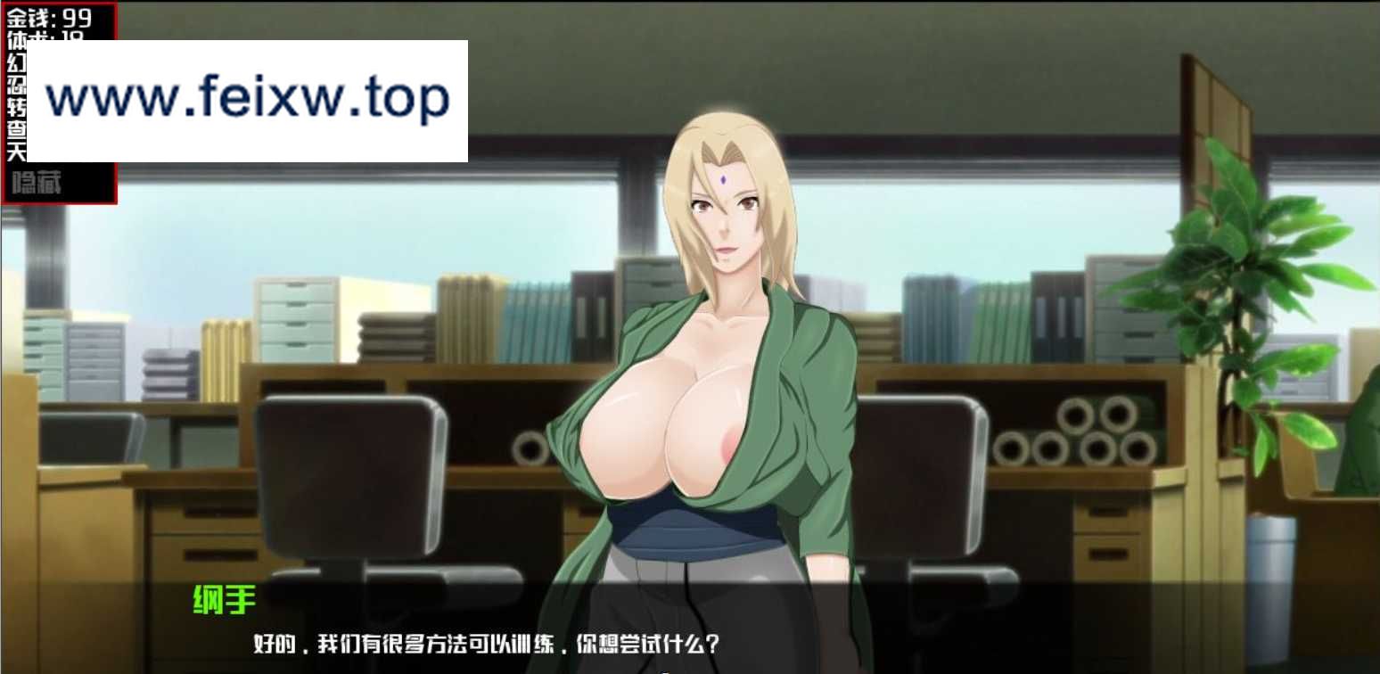 游戏特点:·难得一见的火影同人SLG游戏,在游戏中,你可以对木叶所有的女人进行各种有趣的[攻略]!当然~女主角是佐良娜~不过是25岁的美人佐良娜哦~·游戏是Ver3.0.0 最新版本,大量新角色,砂忍村的秘密村庄剧情进行了大范围更新,现在砂忍村的妹子们也有各种有趣的互动和事件!木叶的剧情也有很大更新!·全程2D手绘CG,画风非常有特色,虽然单看十分奇妙。但是CG真的相当实用!·出场角色丰富,博人转里面几乎所有的女角色都有互动和事件,养成玩法做的也非常好,整体游戏有着6小时以上的游戏时间!·游戏制作人制作了14个不同结局,剧情也经过精雕细琢,主线剧情也相当带劲!