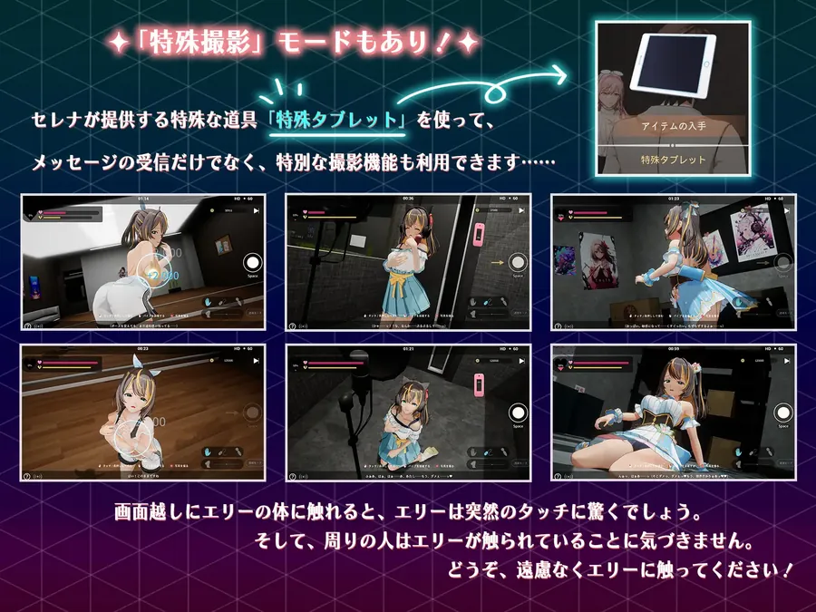 〚故事背景〛玩家作为经纪人,前往大学发掘了一位具有偶像潜力的新人「艾莉」。你将把她招至事务所,在进行「特殊培养」的同时,让她逐渐理解偶像界的「潜规则」,并让她的男友「哈利」见证她从一个「清纯少女」成长为「资深偶像」的过程。而意想不到的偶像结局,正等待着玩家!〚游戏特点〛完全3D动画风格渲染自由探索世界360度无死角H场景〚游戏内容〛H场景数量:14(全部为完整3D)结局数量:6(包含坏结局)