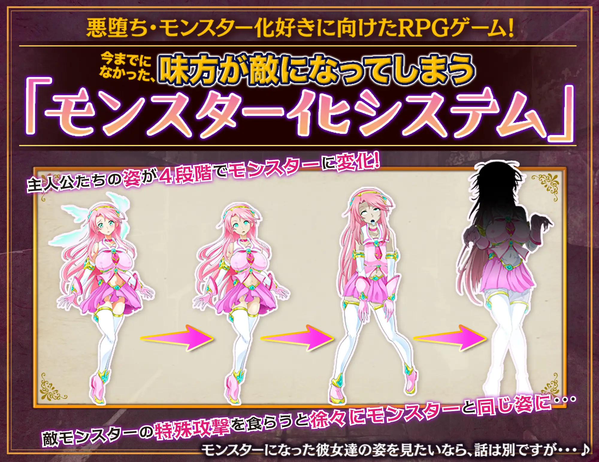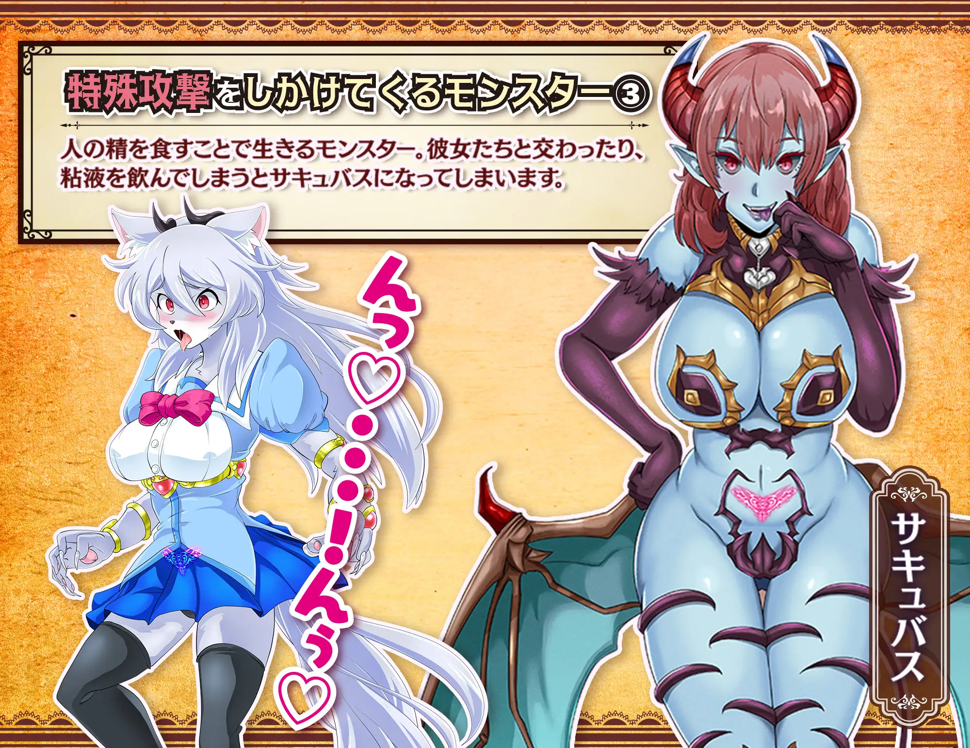 贩卖日2024年05月01日 0点 分类 女主人公 人外娘/魔物娘 魅魔/淫魔 蕾丝/女同 恶堕 精神支配 兽耳 扶她专注于邪恶堕落和怪物变形的RPG20××日本,他们开始与来自其他世界的人共存。随着科学的发展和粮食短缺的解决,共存对人类和其他世界的居民来说都是不可或缺的。另一方面,也有人计划入侵人类世界。他们突然以地牢的形式出现,将其他种族变成自己的种族。为了保护人类世界免受这些人的侵害,在日本的每个地区都部署了具有特殊战斗力的特工。即使在这种状态的日本,也有两个人从今天开始成为特工,尤其是在经常出现地下城的A市。在一款角色扮演游戏中,你和你的朋友“Leona”和“Tsubaki”征服了一个地牢,那里出现了试图让你成为朋友的怪物!
