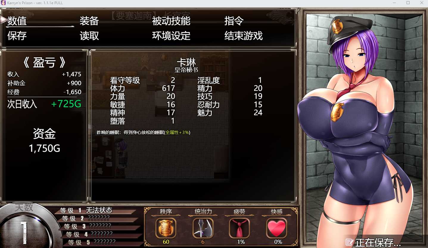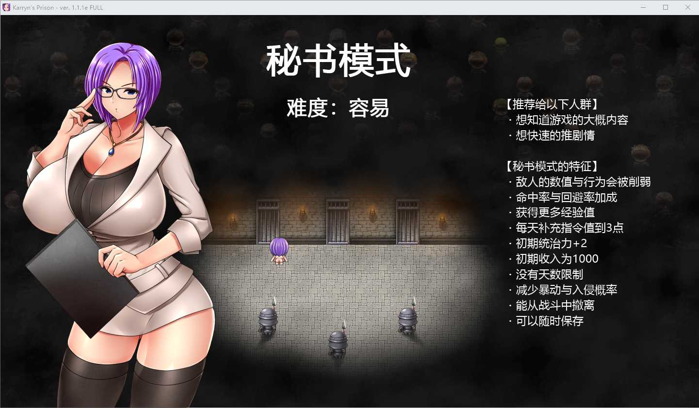 游戏概述:这是一款【さちなま@Remtairy】社团制作的日式SLG游戏。游戏已发布STEAM官方正式版,本次发布最新1.2.9.51官方中文版。本次带来2024年发布最新Ver1.29.51FULL官方中文作弊版!大型健身房DLC终于正式发布,各种健身房社保新玩法,最新完全版。游戏介绍:今天从来不管事的狗皇帝心血来潮,带着秘书视察监狱。适逢监狱日常造·反。(可喜可贺)狗皇帝惊觉管理无人就把自己文武双全的秘书安排了进去从现在开始,新的典狱长——卡琳!正式上任!典狱长勇斗刁民囚犯的故事开始了!更新日志:修正了在用Karryn的H杯版本给兽人kj时的图像错误。修正了其他CG问题。修复了轻微的CG问题!更新CG当Karryn给奶c!!