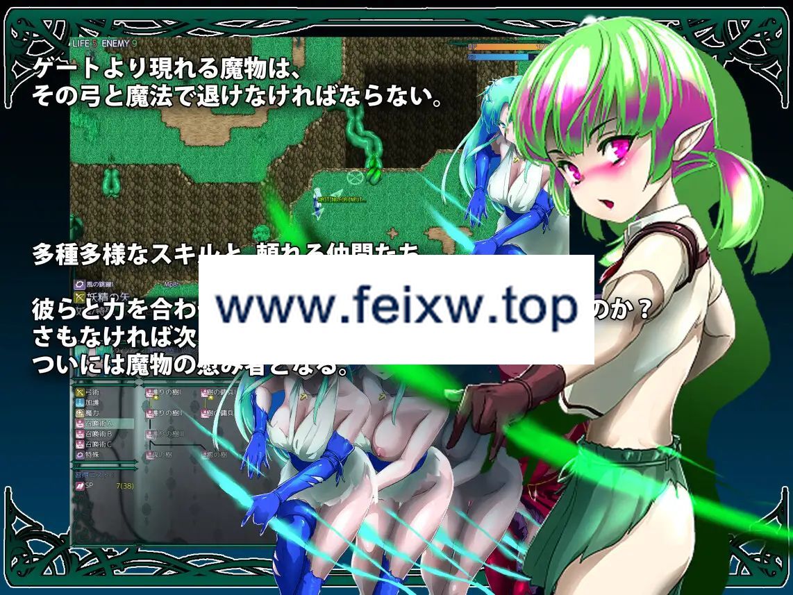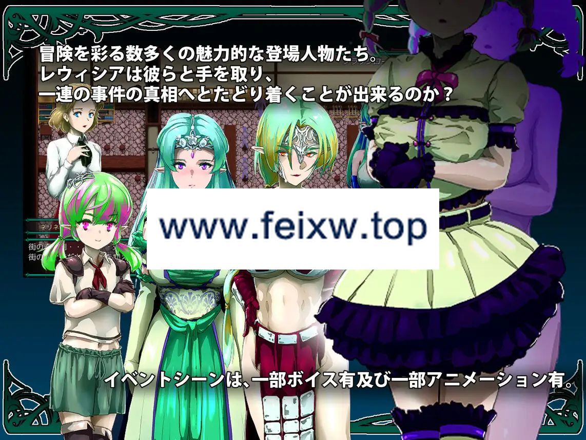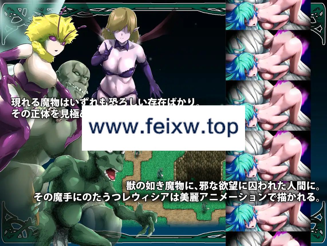 ■发售日期:2023年12月28日 0点分类:女主人公 精灵/妖精 沉迷快乐/快乐堕落 调教 奴隶 强jian 通奸/和奸 异种奸2024年01月21日BUG修复・修复了在战斗中的特定条件下发生的错误问题。2024年01月18日BUG修复・修复了在特定条件下执行特定事件时发生的错误问题。・修复了回忆室的设置错误问题。2024年01月16日BUG修复・更新了内部运行时。◆概要在高耸入云的神树之森中,出现了一个召唤着陷入淫乱欲望的魔物们的门户。为了保护家人和伙伴免受他们的伤害,努力奋斗的是来自阿特伍德的少女蕾维西亚。某个夜晚,身上出现了诅咒纹章的蕾维西亚终于决定寻求帮助并离开小镇。通过与众多人交流,她逐渐揭开了一系列真相的面纱。接近蕾维西亚的不仅仅是魔物们,还有被欲望驱使的男性们,他们一直试图趁机占据她的身体。她是否会被他们所控制,经历凌辱和快感的玷污呢?门户的真正身份是什么?诅咒纹章又意味着什么?蕾维西亚的命运将如何?她能否成功逃脱淫靡快感的束缚,保护阿特伍德的家庭和伙伴们?本作是一款基于2D地图操作蕾维西亚,利用魔法和技能击退魔物的角色扮演游戏。运用智慧洞察来判断迎面而来的魔物行动,并进行击退。多样化的动画和场景将为冒险增添色彩。◆系统本游戏的舞台是布卢姆菲尔德地区的地图,由俯视角度的2D地图和探索画面构成。在地图画面上会显示各个地点的名称,点击名称以鼠标移动到目的地。在与门附近的战斗中,使用俯视角度的2D地图操作蕾维西亚和其他角色来击退魔物。在探索画面上与遇见的人物进行对话或者探索该地区。・需要使用鼠标和键盘。 简单易懂的操作性。・采用具有节奏感的关卡清除型战斗系统。 结合了Roguelike、塔防和模拟等元素。・玩家角色、伙伴角色和敌对角色根据各自的速度进行一格移动或执行一次行动, 战斗将按照这种方式进行。・在魔物从门口出现的路径上召唤伙伴以击退魔物。 通过放置象征护卫的树木等障碍物,可以有利地引导战况发展。・没有经验值和金钱的概念。 通过消耗战斗中获得的技能学习成本,可以获得新技能。・当受到魔物攻击时,装备中的服装会损坏。 在全裸状态下受到攻击,将遭受魔物的凌辱, 将显示出各个魔物与蕾维西亚之间的动画。・在长时间的战斗或者被魔物凌辱导致门溢出魔素侵蚀蕾维西亚身体达到极限值时, 蕾维西亚将失去意识并失败。你能够抵挡住魔物们的魔手并阻止它们的前进吗?◆故事在高耸入云的神树之森中,居住着少女蕾维西亚。这片被称为阿特伍德的园林中,蕾维西亚一直生活在那里。蕾维西亚从不知何时开始,就一直受到出现的门的威胁和追逐。面对从门中涌出的众多魔物,阿特伍德的人们决定寻求附近布莱克罗姆城镇的公会的帮助。然而,在动身前夜,蕾维西亚的身体上出现了一枚陌生的诅咒纹章。她带着纹章所释放的热浪,朝着城镇出发。在阿特伍德的伙伴、城镇和公会的人们的帮助下,蕾维西亚与门中的魔物战斗,并逐渐接近一系列真相。其中,有着对美丽蕾维西亚形态的魔物和人类的淫乱之手。少女在抵挡着侵略者们残暴的行径时,发出微弱的响声。在凌辱和诱惑之后,蕾维西亚将面对什么样的结局呢——。