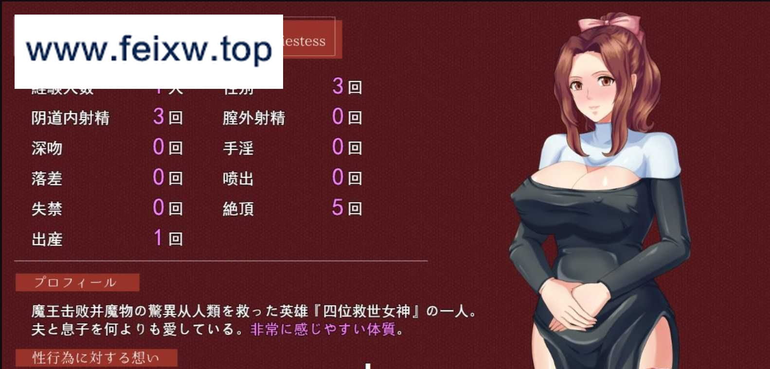 虔诚的圣女塞莲妮亚:塞莲妮亚是从小在教堂长大的前修女。因为教会的教义禁止H行为,所以贞操观念很强,讨厌涩情的行为。连和丈夫也只啪啪过三次,怀运生下儿子后10多年没有H了。虽讨厌H行为但因全身灵敏度很高,所以只要稍微碰下就会有感觉…